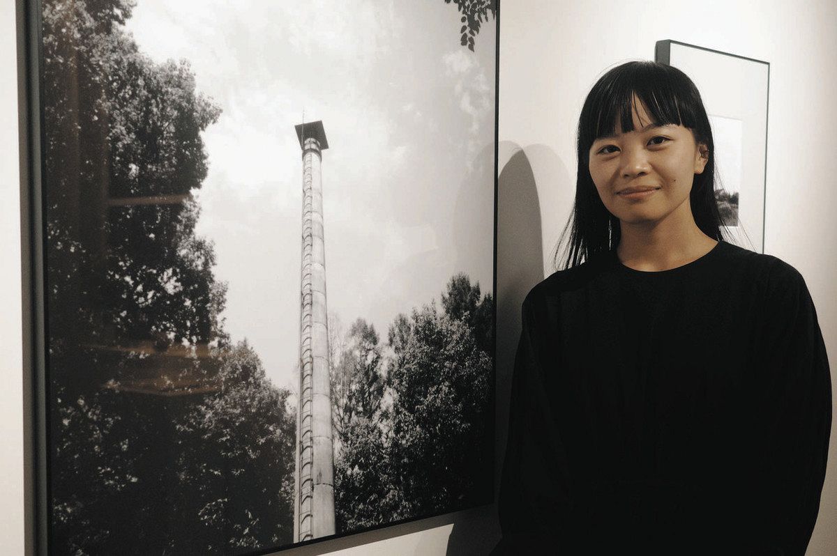 死との距離を考える写真展「沈黙の塔」を開いている写真家の表萌々花さん=目黒区鷹番2で