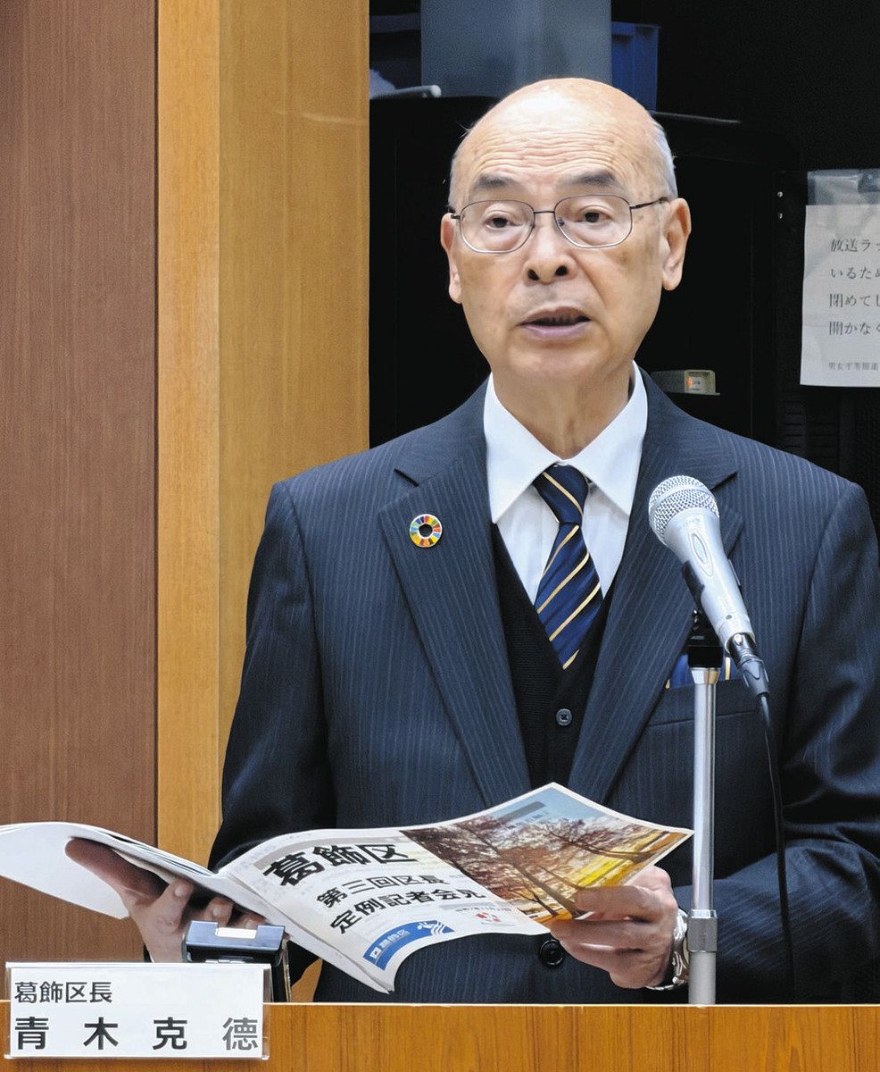 9日投開票の東京・葛飾区長選で5選を果たした青木克徳区長が27日、区内で選挙後初めての会見に臨み、「これまで区民や産業界と直接意見交換をしてきた。その生の声を踏まえて施策を進めたい」と抱負を語った。