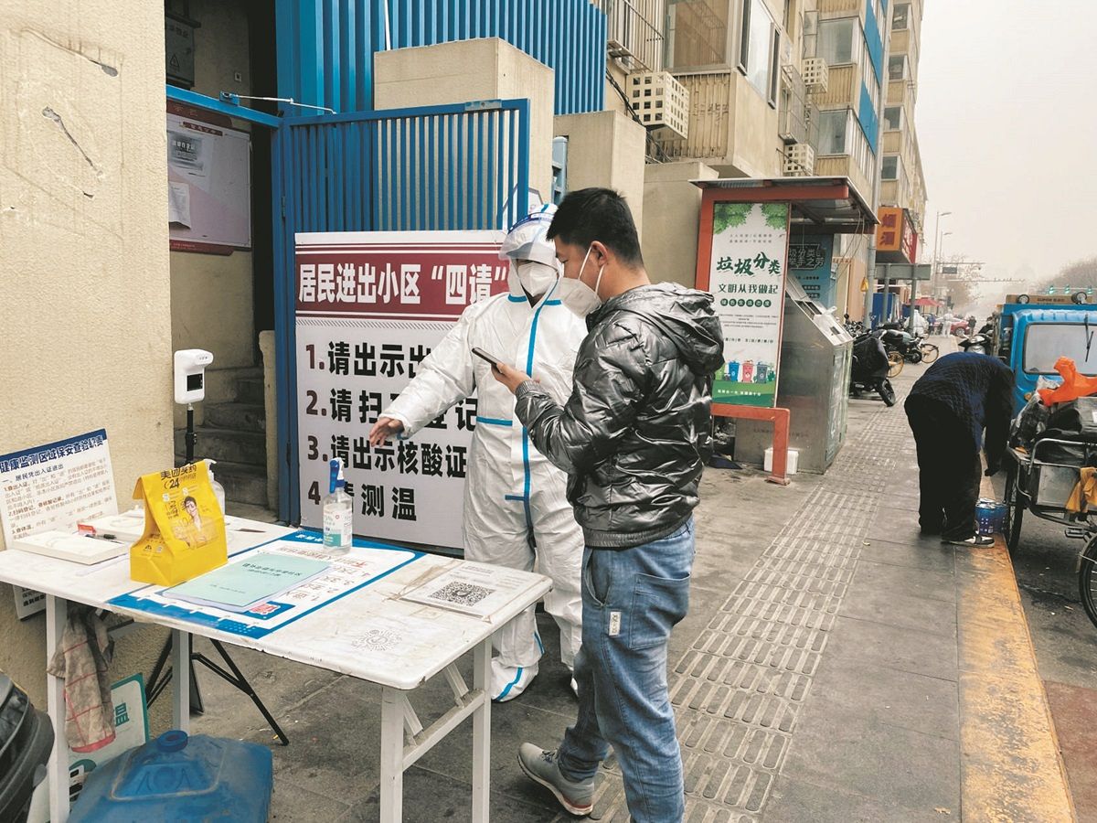 自分が住むマンションに入る際にもPCR検査の陰性証明が求められた中国の「ゼロコロナ政策」=2022年、北京市内で(白山泉撮影)