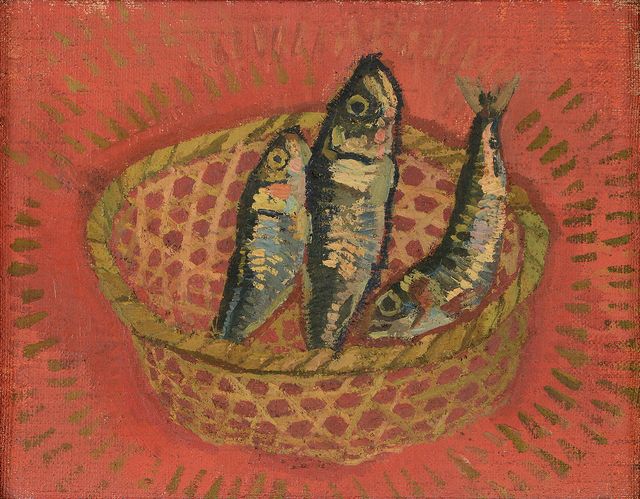 ある時期、わが家での食材として買ったイワシをはじめアジ、ニシンなどの魚ばかり描き、“イワシの徳さん”と呼ばれた。これは1925年頃に制作された「鰯」(碧南市藤井達吉現代美術館蔵)。