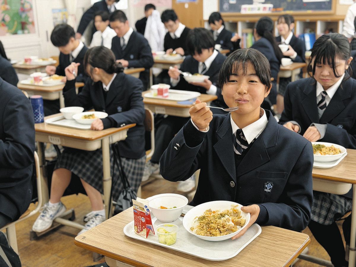 この給食が提供された4日、3年生の教室では、給食委員の生徒がメニューを説明。「いた...