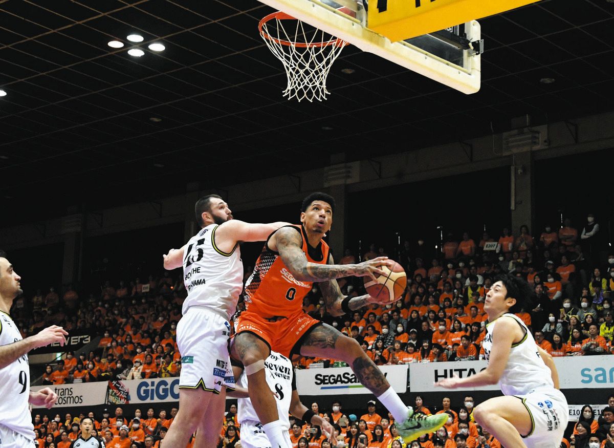 ここでもロウザダがチームの勢いを加速させた。2連続3点シュートで逆転すると、野崎零也の3点シュートもアシスト。第4Qでの37得点を演出した。「正しくプレーすることを意識した」。個人技だけではない。この日は長身選手と連係しての得点も多く、ボール運びなどで攻撃の起点にもなった。チームで戦うことを優先したからこそ「いい結果が出た」。第1戦はSR渋谷が仙台を92─82で振り切った。