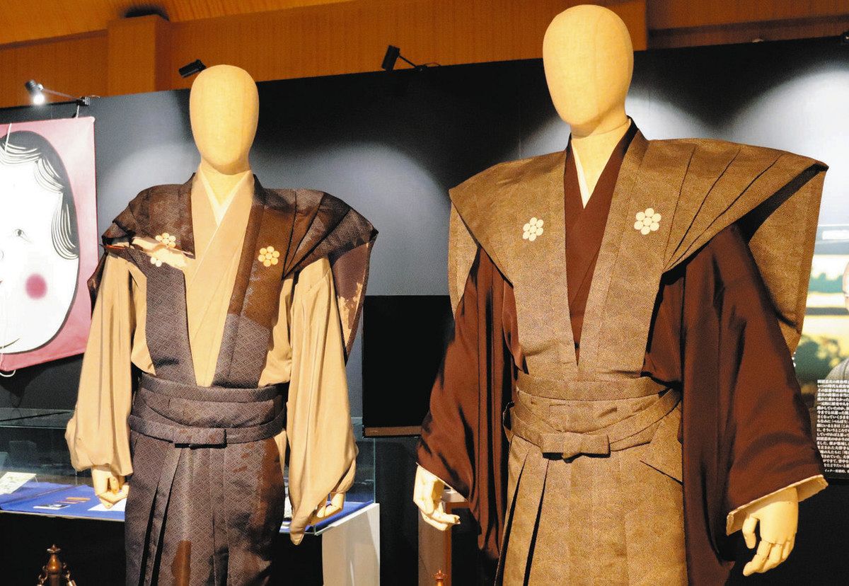 大河ドラマの田沼意次(右)、田沼意知(左)の衣装(牧之原市提供)