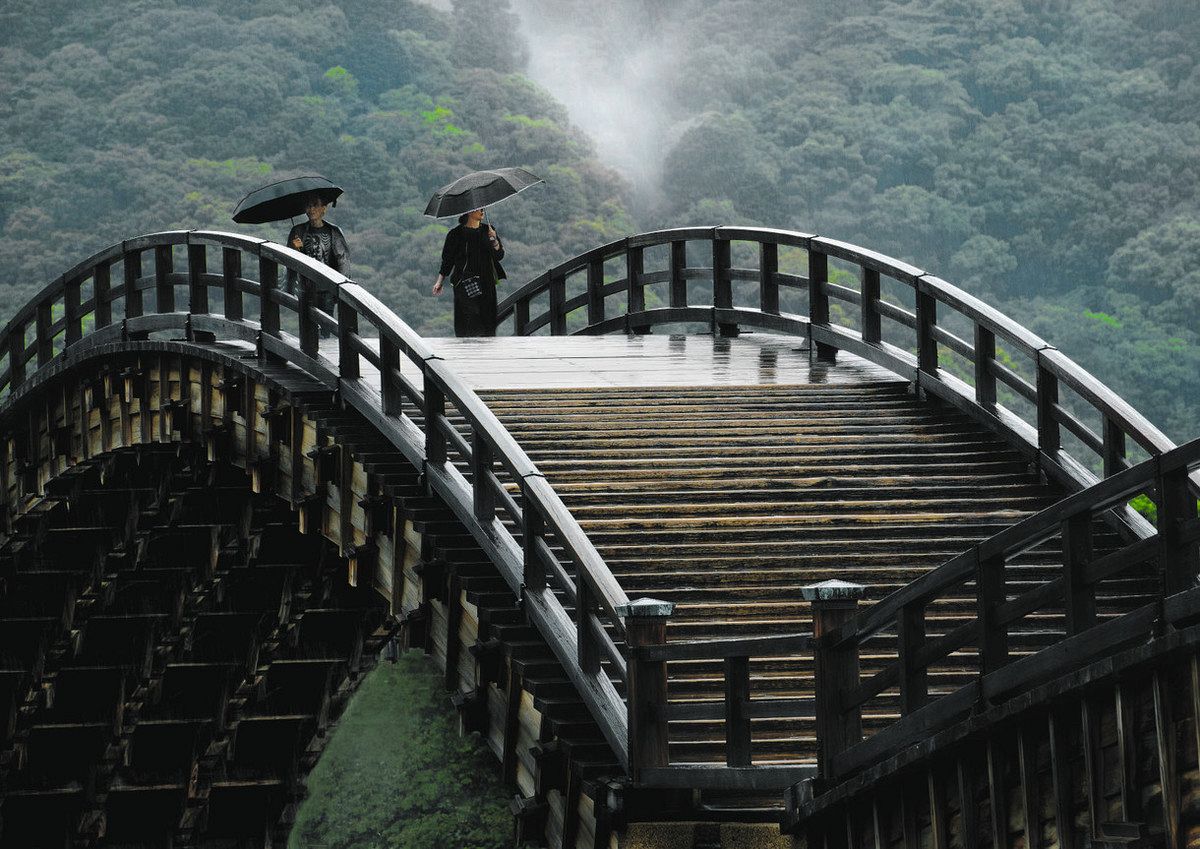 錦帯橋(山口県)を写した大滝明美さんの作品「梅雨時」