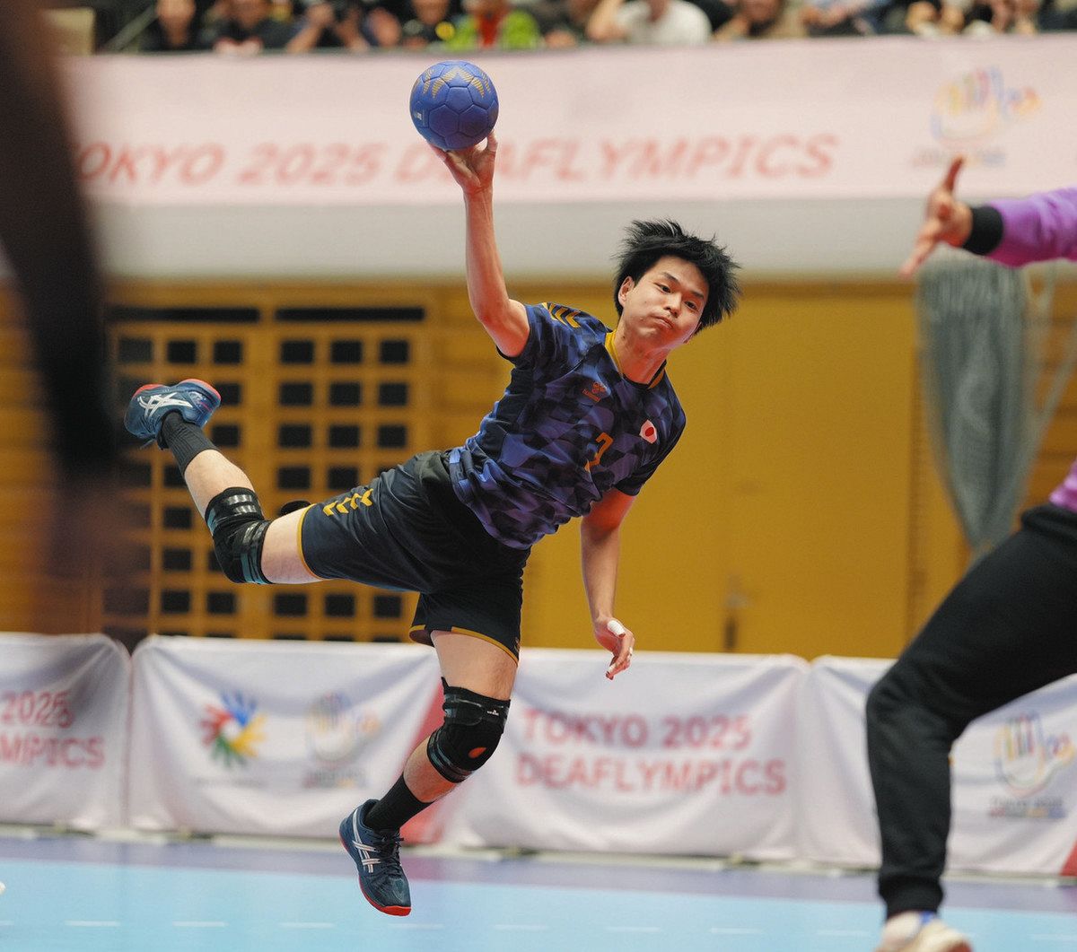 東京デフリンピックのハンドボール予選が19日、駒沢オリンピック公園屋内球技場(東京都世田谷区)であり、筑波技術大(茨城県つくば市)のサ...